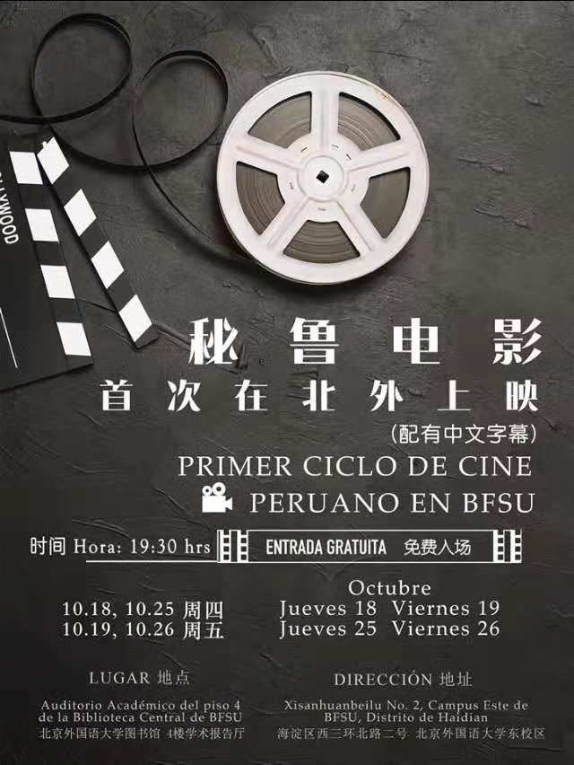 La Universidad de Estudios Extranjeros de Beijing (BFSU) proyectará por primera vez un ciclo de cine peruano, gracias al apoyo de la Embajada de Perú en China y a la Facultad de Filología Hispana y Lusa.