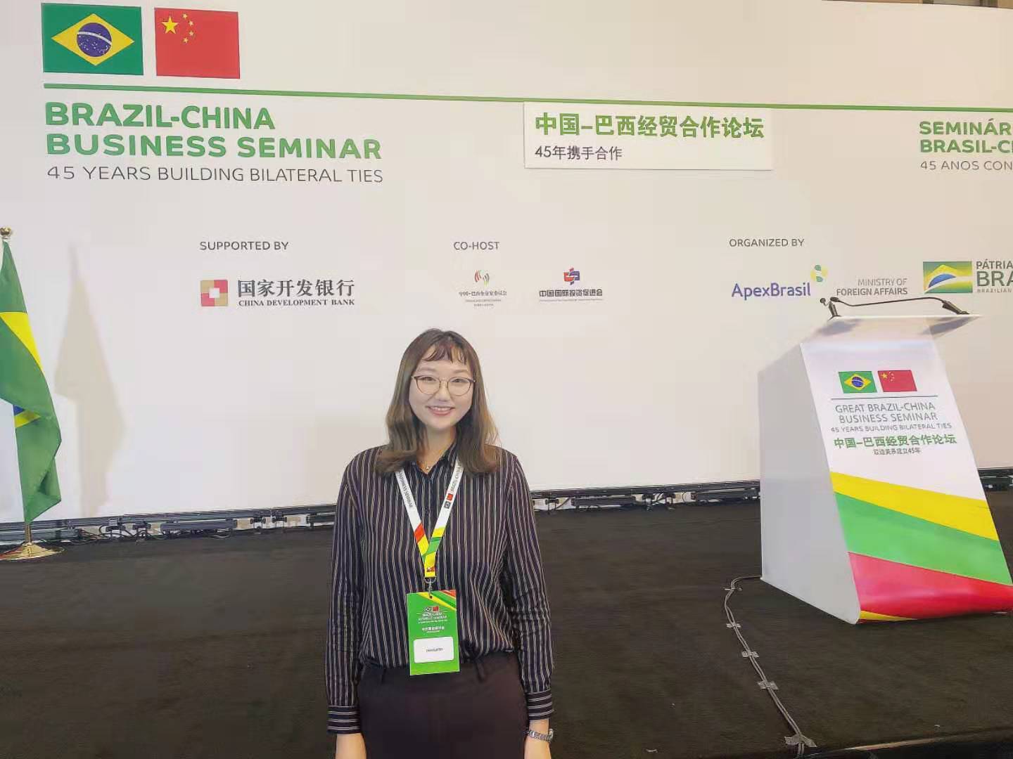 庞若洋:“十分荣幸可以参与到这次中巴商业研讨会的翻译接待活动中。通过这次实践活动,我更直接的感受到了葡语的魅力,同时也意识到了自己的不足之处。接下来,我会继续努力,为成为一名优秀的葡语人而奋斗!”