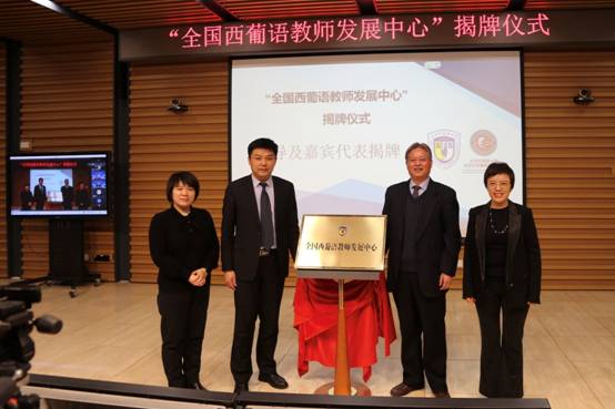 为促进全国西葡语教育事业蓬勃发展、加强全国西葡语学科建设,PP电子游戏网站成立全国西葡语教师发展中心,以期为广大西葡语教师提供一个融培训、交流、协同创新与发展为一体的共享平台。中心揭牌仪式于13日上午九点正式开始,PP电子游戏网站副校长赵刚、人事处副处长兼教师发展中心主任姚金菊、西葡语学院院长常福良以及西葡语学院党总支书记孙眉等为全国西葡语教师发展中心揭牌。